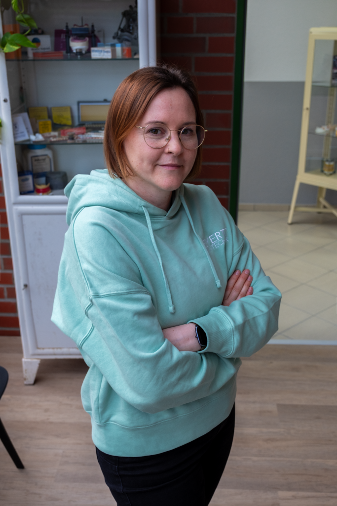 Swenja ist unsere Labormanagerin und sorgt dafür, dass die organisatorischen Abläufe im Labor effizient und strukturiert funktionieren. Ihre Hauptaufgabe ist die Schnittstelle zwischen den Technikern und der Geschäftsführung – sie koordiniert Informationen, stimmt Prozesse ab und sorgt für einen reibungslosen Austausch. Dabei kümmert sie sich vor allem um alle organisatorischen und administrativen Themen, die nicht direkt mit dem Zahnersatz zu tun haben. Durch ihre strukturierte Arbeitsweise behält sie stets den Überblick und trägt entscheidend dazu bei, dass der Laboralltag rund läuft.